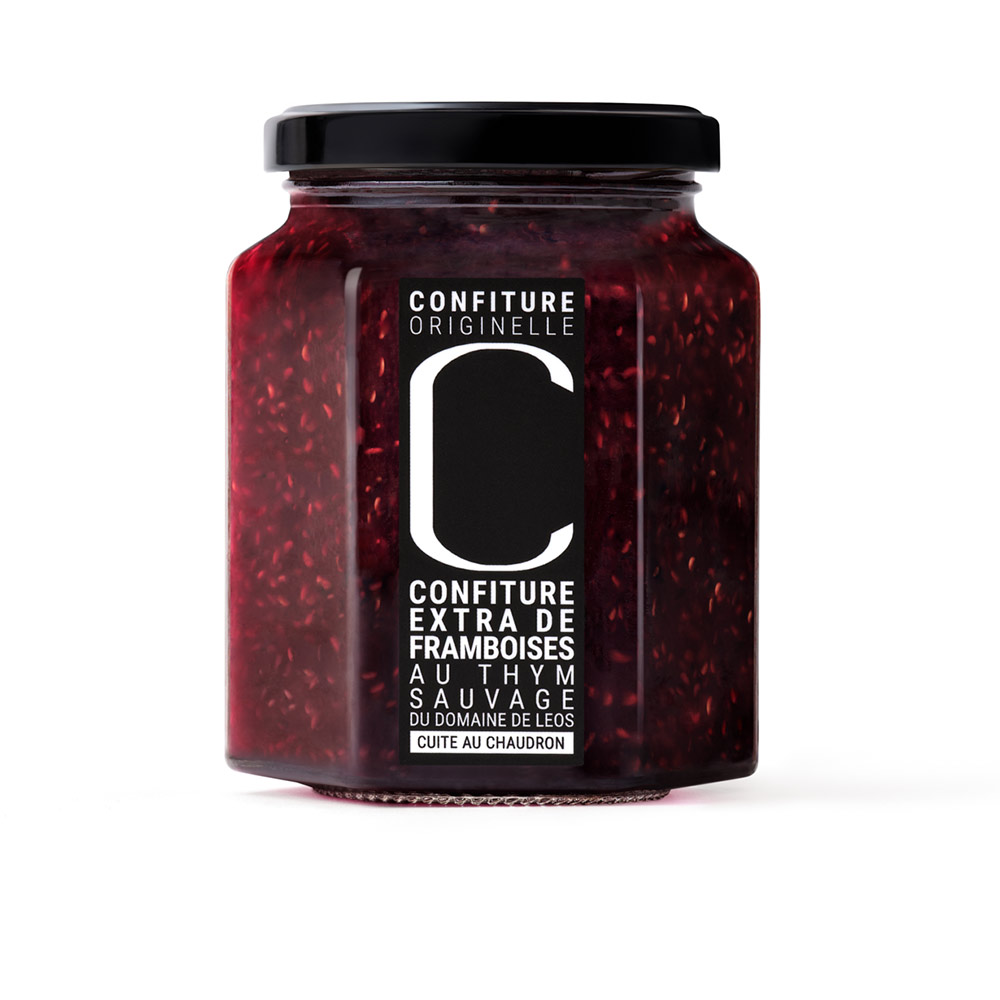 Confiture extra de Framboises au thym sauvage du Domaine de Leos