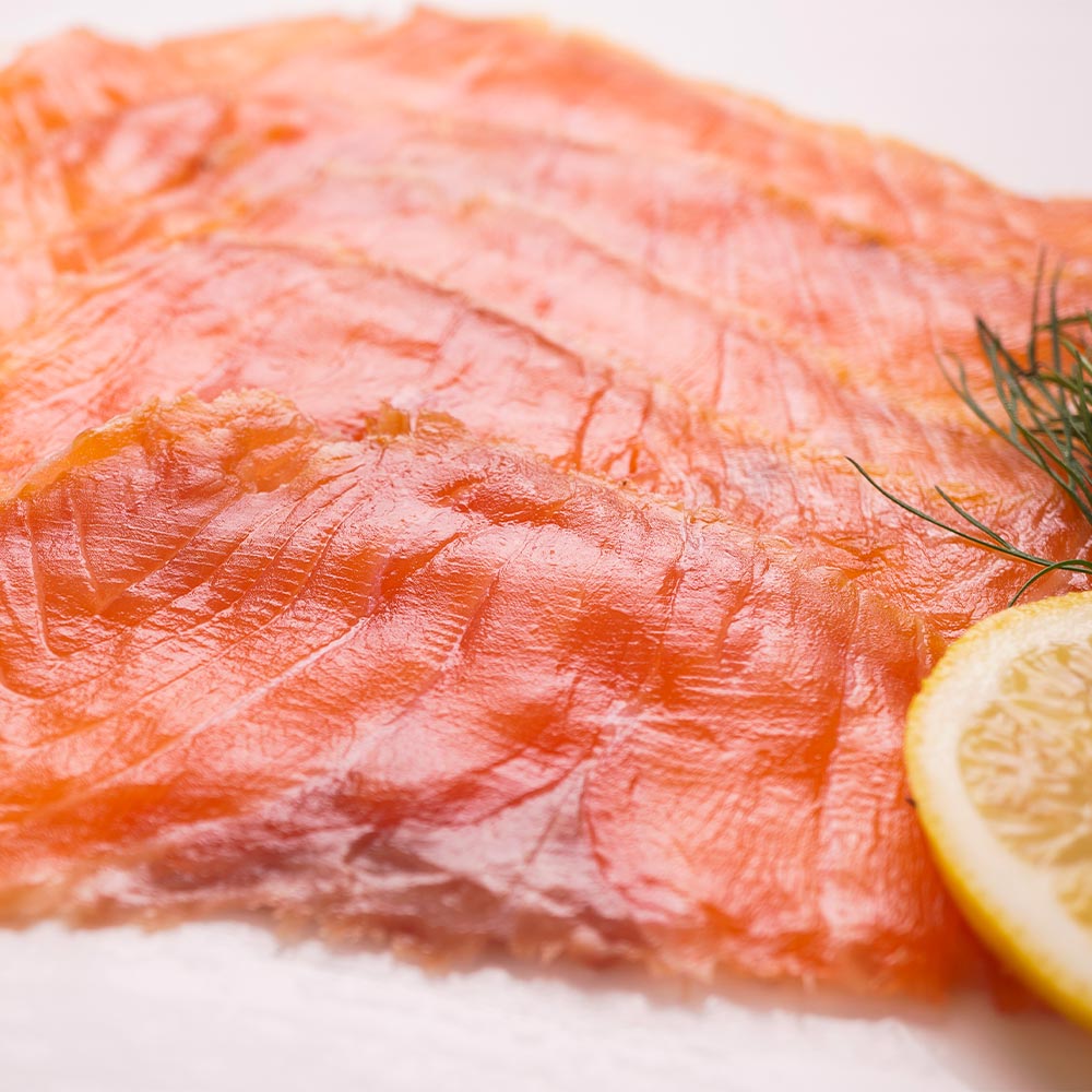 Entièrement transformé par nos soins, ce saumon est salé à la main, fumé doucement pour révéler ses arômes riches et subtils, puis tranché finement et conditionné sous vide.